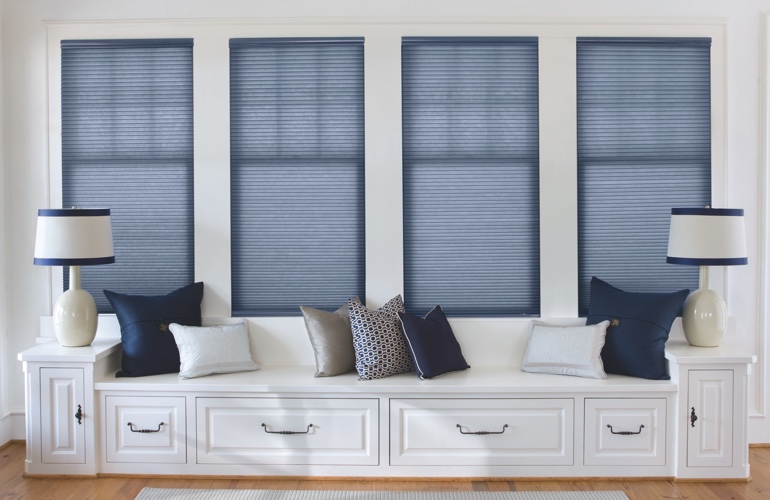 Another great blind upgrade are cellular (or honeycomb) shades. They’re built to block more heat than regular shades, are a snap to use, and provide a huge variety of options in the way of colors, textures, fabrics and more.